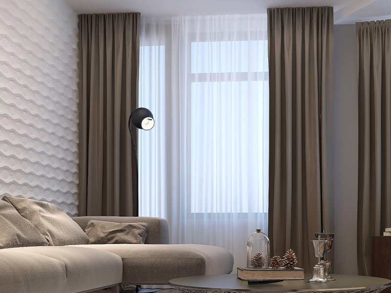 Contamos con una exclusiva colección de tejidos traslúcidos y black out, pensada para crear ambientes acogedores sin perder la elegancia de tus espacios. Sabemos que la cortina es un elemento importante en tu decoración y por eso es importante cuidar cada elemento que la conforma, desde el tipo de tejido y color, así como sus accesorios para su colocación y los acabados.